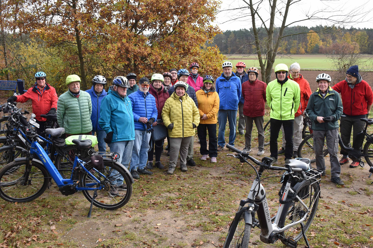 Bei noch vergleichsweise guten Wetterbedingungen traten am 14.11.2025 22 Radlerinnen und Radler ihre letzte Radtour für das Jahr 2025 an. Heute stand jedoch nur eine kleine Tour auf dem Programm, denn um 12 Uhr war ein Essen im Restaurant Sterkel geplant. Auch Frau Ziesecke von der „Offenbach Post” war beim Start am 50. Breitengrad zugegen.